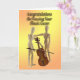 Two mannequins playing the violin and saying congratulations on passing your music exam