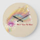 Let these bright coloured musical notes flow through your day on thus beige background acrylic wall clock in your room.