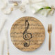 Paper party plates with image of a vintage sheet of music and a musical note.