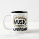 Musicians are superheroes with the power to change the world! Let everyone know who you are with this fun, cartoon inspired "Music Is My Superpower" mug. Featuring an exciting yellow, red and black design on a white background, with a cool black interior. Fill this mug with your favourite beverage, and get your mornings off to a super-powerful start! Makes the perfect gift for your favourite piano, violin, band, or any instrumental or vocal teacher!