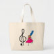 Cute cartoon whimsical illustration of a happy little stick figure girl holding a giant musical treble clef symbol. Easily customise and choose your own background colour or add text. Image available on various gifts and products.