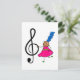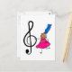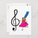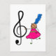 Cute cartoon whimsical illustration of a happy little stick figure girl holding a giant musical treble clef symbol. Easily customise and choose your own background colour or add text. Image available on various gifts and products.