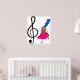 Cute cartoon whimsical illustration of a happy little stick figure girl holding a giant musical treble clef symbol. Easily customise and choose your own background colour or add text. Image available on various gifts and products.