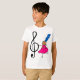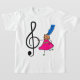 Cute cartoon whimsical illustration of a happy little stick figure girl holding a giant musical treble clef symbol. Easily customise and choose your own background colour or add text. Image available on various gifts and products.