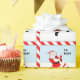 Personalised music-themed holiday gift wrap featuring Santa wearing a headset and dancing to music on his headphones. Add names to personalise.