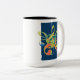 Two-tone coffee mug for the music lovers and musicians in your life. The graphic consists of interlocking treble clefs (the high notes) and bass clefs (the low notes). Customize this mug by adding the music lover's name, or a quote by a famous musician.