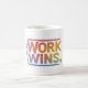 The t-shirt design features the bold phrase "Work Wins" prominently displayed in a clean, sans-serif font. The typography is centre Ed and positioned near the chest area, creating a strong visual impact. The background colour is a solid, neutral hue, allowing the message to stand out. The overall design conveys a sense of determination, hard work, and the belief that effort and dedication lead to success