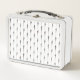 This is a standard metal lunchbox that appears to work just fine. We designed this box ourselves with an uploaded photo and custom text on the front and back. It looks absolutely beautiful except the front of the lunchbox is not centered like it shows in the photo. The print borders don't align with the inset flat part of the box where the preview photo online showed it perfectly centered in there. The back looks nice and centered though.