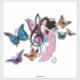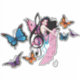 A cute little fairy all in pink with a music not and butterflies in a backdrop of light blue.