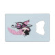 A cute little fairy all in pink with a. music note in a backdrop of blue