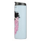 A cute little fairy all in pink with a music note in a backdrop of blue