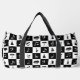Perfect gift for the music lover with a design featuring various musical notes and instruments on a stylish black and white squares design.