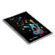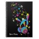 Get energised with this vibrant black notebook featuring neon-coloured music notes and headphones arranged diagonally. Perfect for upbeat kids, this customisable notebook brings fun and style to any desk. Personalise it for a unique and lively touch!