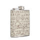 The flask itself is fine. It’s a cheap flask, obviously bought in bulk, however am prepared to overlook that. Given that it is a personalized item, I would have liked to have seen gift boxing instead of the generic packaging. Terrible printing, and/or quality. It’s a cheap, tacky vinyl. It is not cut straight and is also applied in a way that it is overhanging the bottom, causing the glue to catch on items and it will eventually roll and tear, damaging the wrap.