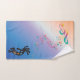 Music notes from playing his flute. Moon and stars Southwest Kokopelli Bath Towels. Native American Southwestern Abstract Kokopelli decorated in colourful moon and star symbols. Cave Petroglyph inspired. Vivid music note on multicolored background. A colour combination that you can customise to match your bathroom decor. Kokopelli is a fertility deity, a humpbacked flute player, win  Native American cultures. Attributed to ancient aliens or tribal art and inspired by cave and rock drawings. Customise your Kokopelli bath towels colours and styles. Great gift idea for those that ponder the ancient mysteries of the planet.