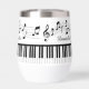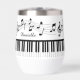 Modern, personalized music-themed wine tumbler featuring a piano keyboard and music notes with a name, monogram or custom text in your choice of colors and font styles (shown in black and white). Ideal for music teachers, musicians and music professionals. ASSISTANCE: For help with design modification, contact the designer BEFORE ORDERING via the Zazzle Chat MESSAGE tab below or email makeitaboutyoustore@gmail.com.