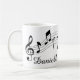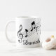 Modern, stylish mug with a musical staff in your choice of text font styles and colours as well as the staff graphic and background colours (shown in black on white) and personalised with a name or your custom text. Ideal for music teachers, musicians, music professionals and music lovers. OPTIONS: The sample is shown in the 11 oz size mug; other sizes and drinkware styles are available on the ordering page. ASSISTANCE: For help with design modification or personalisation, colour change, resizing, transferring the design to another product or if you would like coordinating items, contact the designer BEFORE ORDERING via the Zazzle Chat MESSAGE tab below or email makeitaboutyoustore@gmail.com.