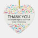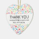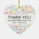 Music teacher christmas ornament featuring a colourful heart made up of music notes, a thank you title, a cute quote, and the teachers name.