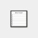 This small square 3x3 sticky notepad can be personalised with a name or message. It says "Notes to Self", and is music themed with musical notes on the lines. It can make a nice stocking stuffer for a musician or music lover. There is a simple clean black border.