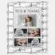 This custom keepsake blanket a white coloured background with black music notes printed across it. A sample name is printed at the top which you can personalise to include your own name, custom message, or quote. A large photo is placed in the centre portion with four other sample family photographs placed in the bottom. A simple grey border frames the blanket. It's perfect for the musician in your life.