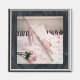White piano serves as a backdrop for a silver flute, sheet music, pink ballet shoes, pink roses and petals. Set in a matte silver frame on a black satin background. Stylised digital design for you to enjoy.