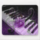 A purple rose on piano keys with music notes surrounding it., Sweet sounds of music, touch everyone heart.