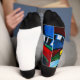 "Red Like Jazz" is an original abstract art piece by MK Podschweit, a disabled artist and author. These witty socks are a vibrant and whimsical piece of her work. This jazz ensemble features drums, saxophone, bass, and keys.