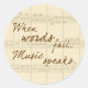 This pretty design features the sentiment, "When words fail, music speaks", on an almond toned sheet music look background.