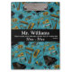 Never have your clipboard walk away again - Personalised back to school supplies for music teachers. Going back to school can be rough, having gorgeous, musical instruments on a uniquely you classroom supples makes it easier. Classical percussion, string, and brass instruments on a lagoon blue background.