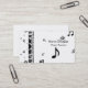 Business cards for music teachers that features a piano graphic and music notes on the front with your business information on the back.