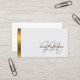 This simple music teacher musician skills and talents professional business card has a gold hued stripe on the left edge. The lower right edge consists of a your name and title in simple easy to read letters. Behind your name and title, your monogram letter appears in a bold cursive font (you can choose your own colour). Designed for music, musical talents, musician, music production, music instruments, music equipment, gold, simple, elegant, classy, sophisticated themes.