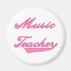 Pink baseball style text that reads "Music Teacher" on music teacher T-shirts, mousepads, tote bags, mugs, stickers, cards, buttons, magnets, keychains, and other items!