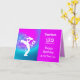 A fun card for any music lovers in purple and blue ombre tones it shows a musician playing his saxophone with music notes swirling our of it. The text reads happy birthday and all that jazz but please feel free to change it to words of your own choice and don't forget to customise it with a name and age.