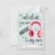This cool Valentine's Day card features a pair of headphones with the words, "Valentine, you are music to my ears". Hearts, musical notes, and zigzags are in the background in purple and a light pinkish cream. This card is great for kids who need to bring Valentines into the classroom. You can add the recipient's name in the front, and the back includes customisable text where you can add your child's name.