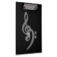 A classy simple black/white music themed clipboard - white treble and bass clefs against a textured black background. Music Love.