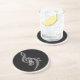 A simple black/white music themed coaster - white treble and bass clefs against a textured black background.