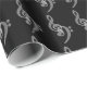 A piece of classy simple black/white music themed wrapping paper - white treble and bass clefs against a textured black background. Music Love.