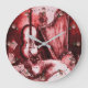 MUSICAL CAT WITH OWL VIOLIN AND HARP ,RED WHITE LARGE CLOCK