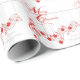 Elegant Christmas ball ornaments covered in red lace with red bows and silver trimming on a moving musical staff are featured on this unique custom name Christmas gift wrap paper. The beautiful vintage red lace motif of interlacing stars and flowers on the Christmas ornaments is reminiscent of the ancient craft of lace-making. Personalise with your name using the template provided. Original design by Anura Design Studio.