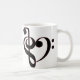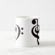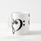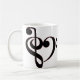 Musical Clefs Mug features a heart formed by a treble clef and a bass clef in black outlined in red.