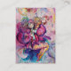 Colourful, whimsical,funny pink clown playing bugle with an expressive owl and joyful musical notes,flowers,leaves in vibrant red,fuchsia,violet,purple,blue,white colours, watercolor painting by Bulgan Lumini (c)