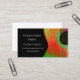 Guitar lessons business card, with an abstract guitar image filled with red and green colours on a black background. White lettering allows you to customise with your own information. Great for advertising and networking your musical business.