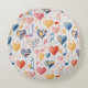 A fun musical hearts pattern on a round pillow in a painterly style