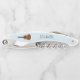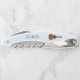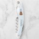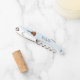Personalised musical corkscrew with an acoustic guitar image on a blue background. With black script typography, you can customise your own information. Great for adding musical style to your beverage accessories.