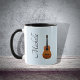 Musical instrument custom acoustic guitar mug, with a blue background and a guitar image. Black lettering can be personalised with your own text. A fun gift for the music lover or musician in your life