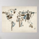 A World Map made from the silhouettes of musical instruments on a vintage style background. Among others, the musical instruments shown include the violin, oboe, guitar, banjo, trumpet, saxophone, clarinet, french horn, tuba, metronome, drums and triangle.