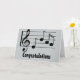 Congratulations card with fully customisable text and a simple design of a black musical staff and musical notation notes on a treble clef against a fully customisable background. This design is perfect for a musician or music student or music lover anywhere.