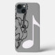 A graphic design of a white musical note and a man playing saxophone, and other instruments - the grey background can be changed ("customised it" button)