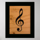 A cool idea to decor a room wall for a musician. The image of a graphic black musical note (treble-clef) on a wooden background with custom name, and black frame