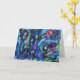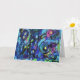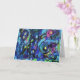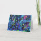 Abstract music art painting of musical notes floating around the canvas in soothing blues, bright lavender, and swirling green creating an artistic tribute to music and song. Personalise this fine art greeting or note card with your custom text and images to make special abstract painting card gifts!